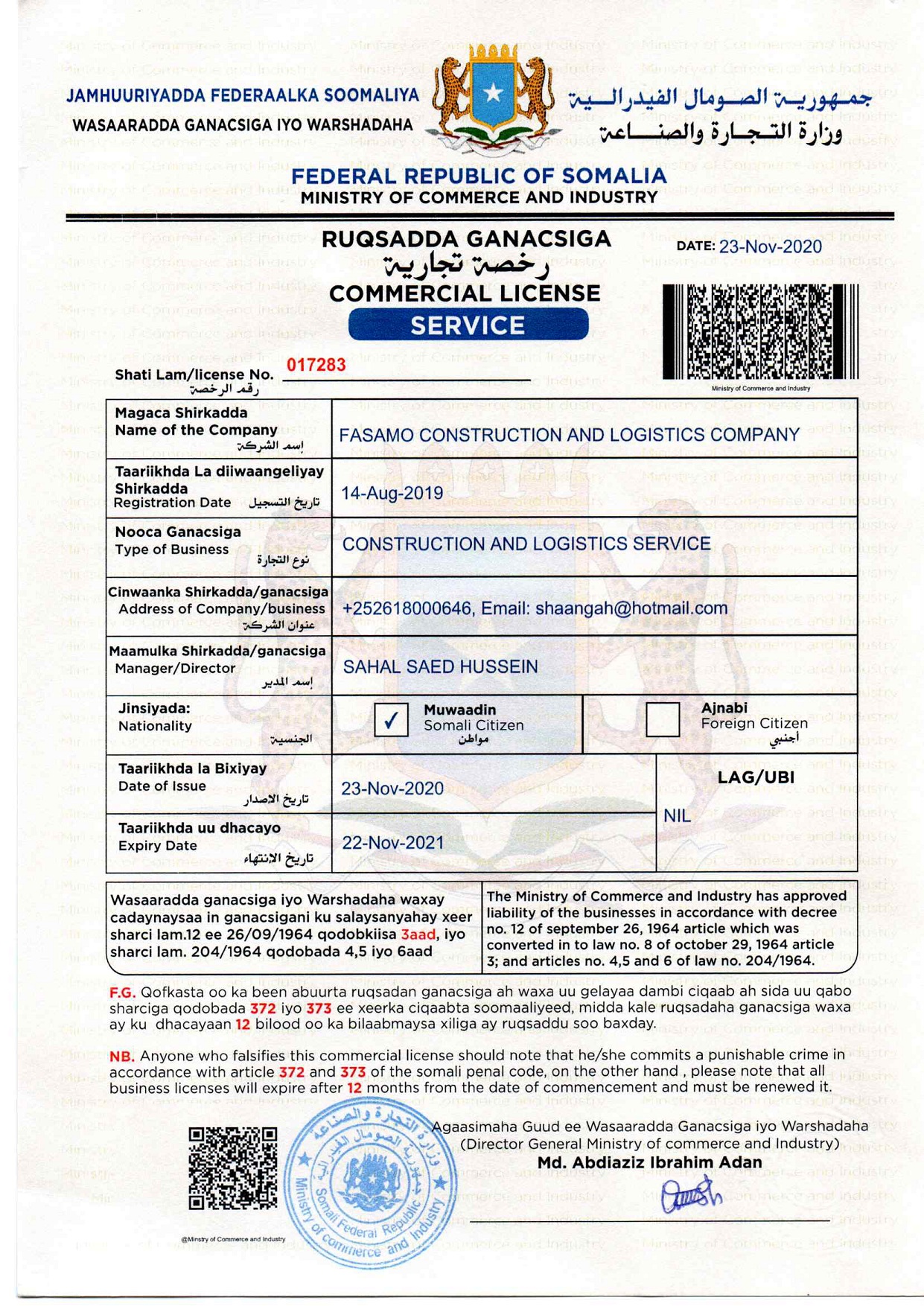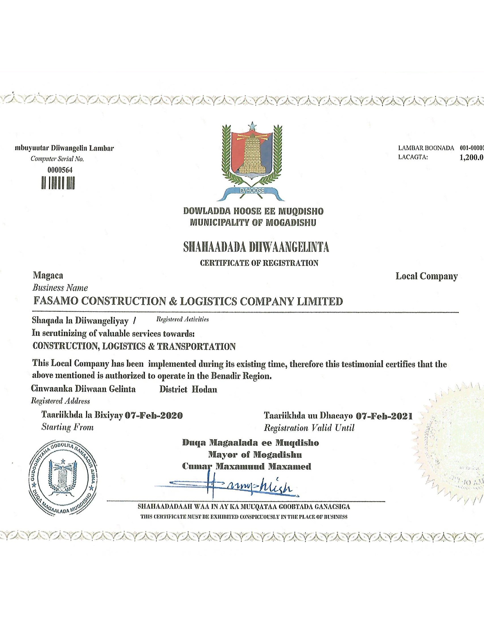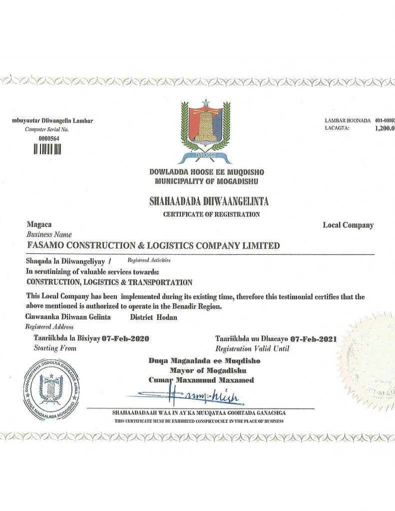 © Copyright 2019 Fasamo Construction & Logistics Ltd